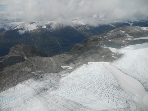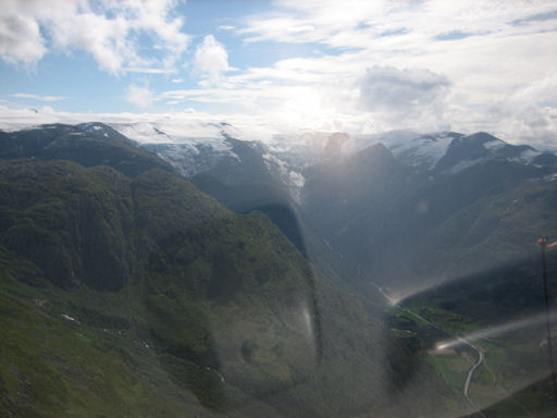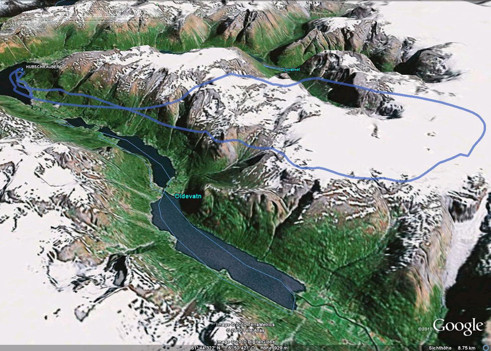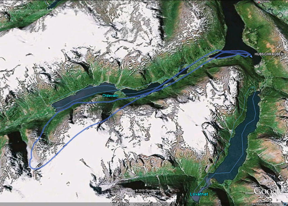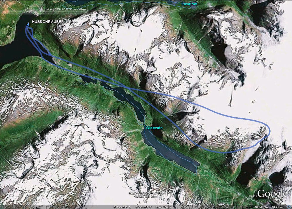 Mit dem Helikopter sind wir mit bis zu 250km/h bis auf 2km Höhe geflogen. Der Flug ging bis zum mächtigen Jostedal-Gletscher.Klicke auf ein Bild!